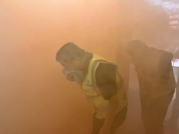 隨后進(jìn)入應(yīng)急疏散演練環(huán)節(jié),一名員工發(fā)現(xiàn)火情,立即上報(bào)并啟動(dòng)應(yīng)急響應(yīng)。員工們迅速行動(dòng),用濕毛巾捂住口鼻,按照緊急疏散標(biāo)識(shí)安全、有序的進(jìn)行緊急撤離。在演練過程中,員工們展現(xiàn)了較高的自救互救意識(shí)和團(tuán)隊(duì)協(xié)作能力,確保了演練順利進(jìn)行。